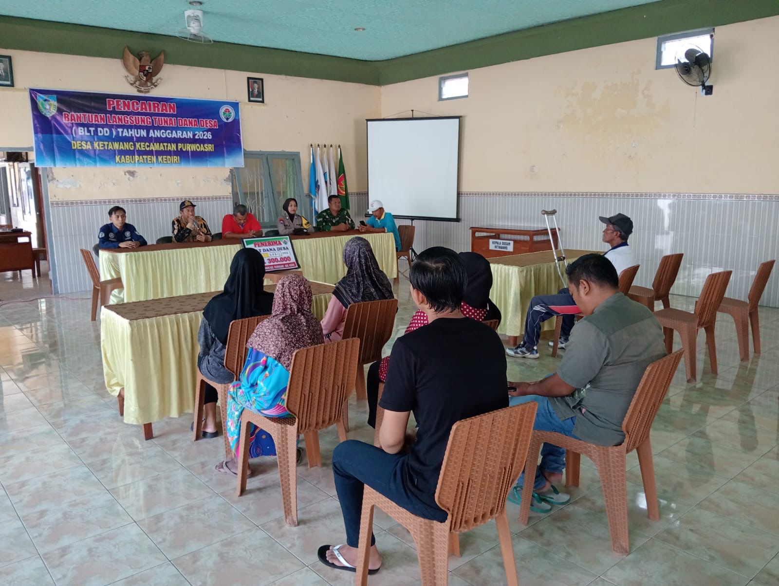 Penyaluran BLTDD di Desa Ketawang turut di hadiri langsung oleh perwakilan Kecamatan Purwoasri Bapak Bagus, Kepala Desa Ketawang Bapak Drs. Wari beserta Perangkat Desa, Pendamping Desa Bapak Indra, Babinsa Desa Ketawang Pelda Nanang dan Bhabinkamtibmas.
