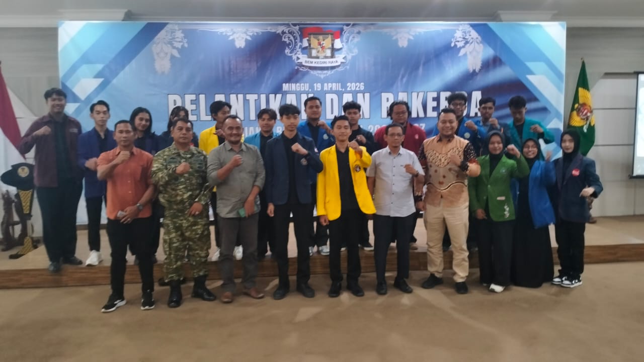KEDIRI, – Pelantikan dan Rapat Kerja Daerah (Rakerda) Aliansi Badan Eksekutif Mahasiswa (BEM) Kediri Raya tahun 2026 digelar di Ruang Joyoboyo, Balaikota Kediri. Kegitan itu mengusung tema “Menyulam Asa, Merangkai Rencana BEM Kediri Raya Dalam Harmoni Gerak dan Pikir”. Minggu (19/4/2026).
