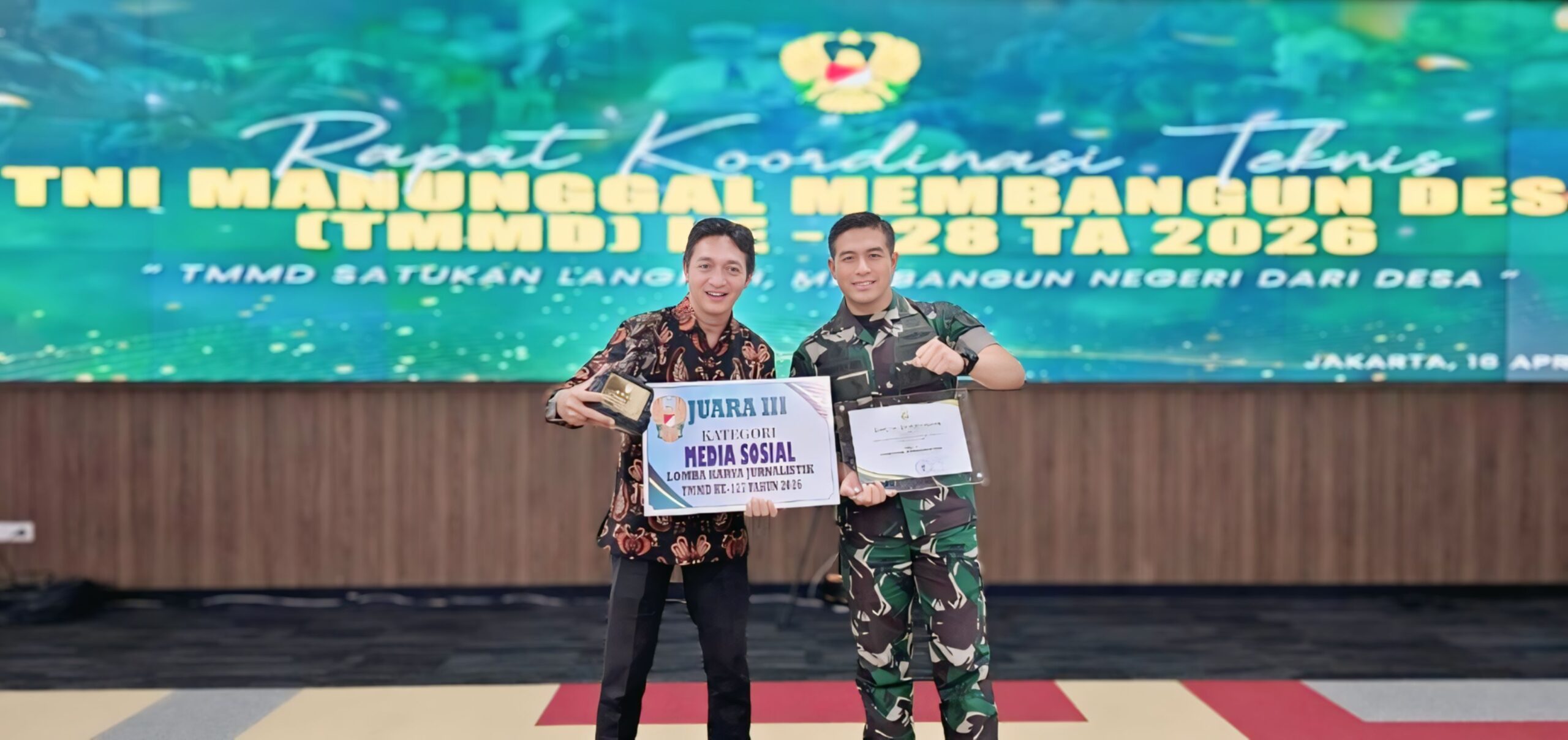 TMMD Kodim 0809/Kediri Raih Penghargaan Juara III Nasional LKJ Kategori Pembina Wartawan Media Sosial